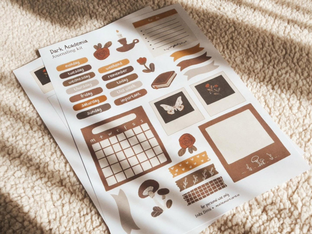 Dark Academia Printable Journal / Planner Kit, 3D, Pop Up, Bullet Journal, Bujo, Stickers, Printable Stationery, Cottagecore, Ephemera